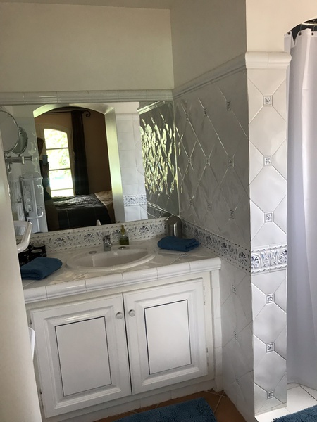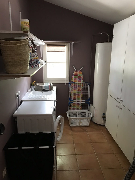 Direkt nebenan befindet sich der praktische Hauswirtschaftsraum, der von außen bequem vom Kofferraum aus zugänglich ist – perfekt, um Einkäufe von den Märkten der Provence unterzubringen. Hier finden Sie auch die Waschmaschine, deren frisch gewaschene Wäsche im Hof unter der südlichen Sonne schnell trocknet.