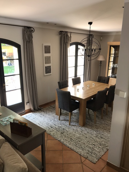 Der angrenzende Essbereich bietet Platz für bis zu zwölf Personen am großen, doppelt ausziehbaren Esstisch.